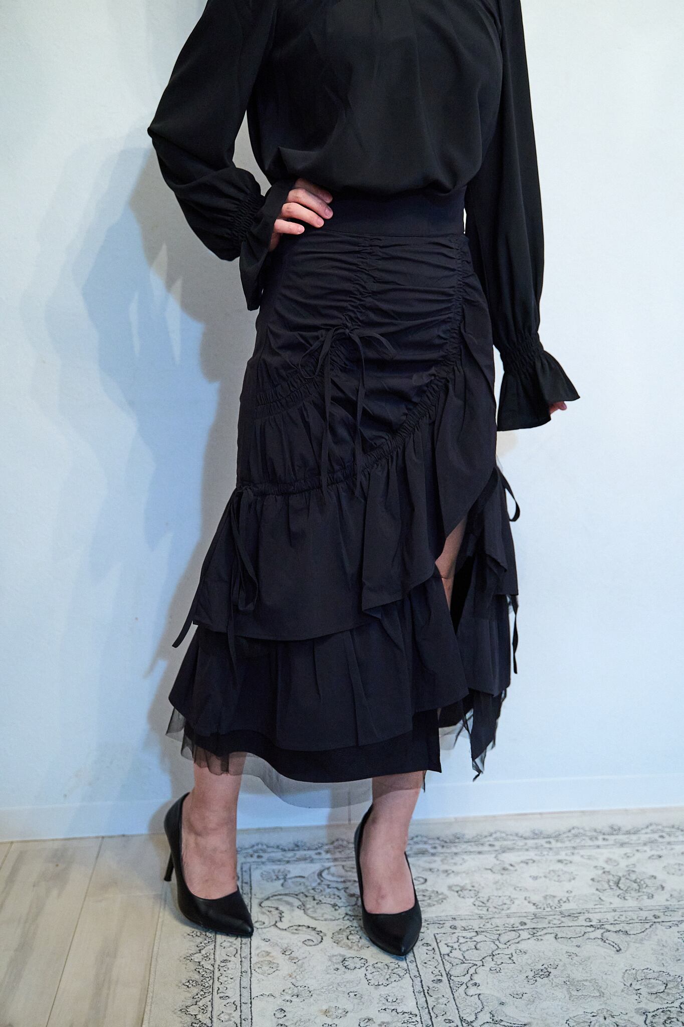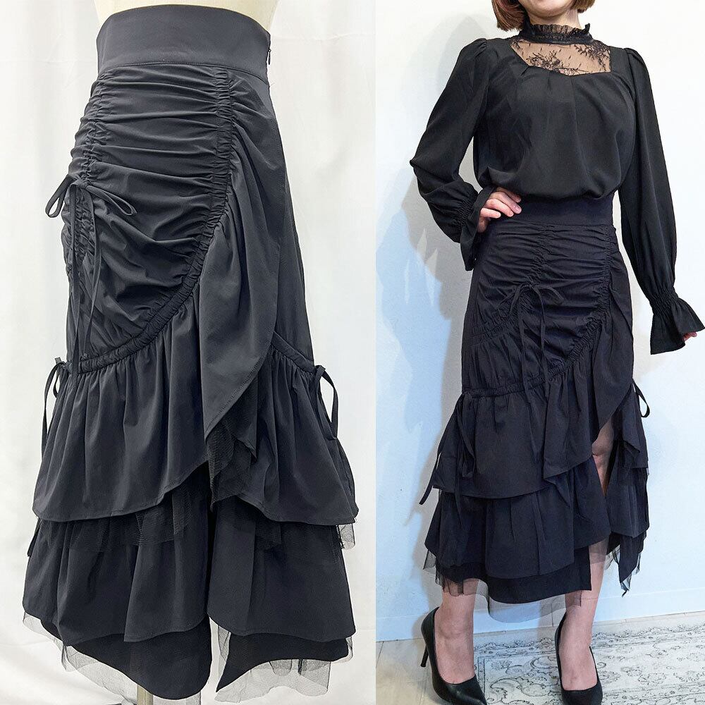 華やかさをプラスするアシンメトリー レイヤードフリル スカートです。
