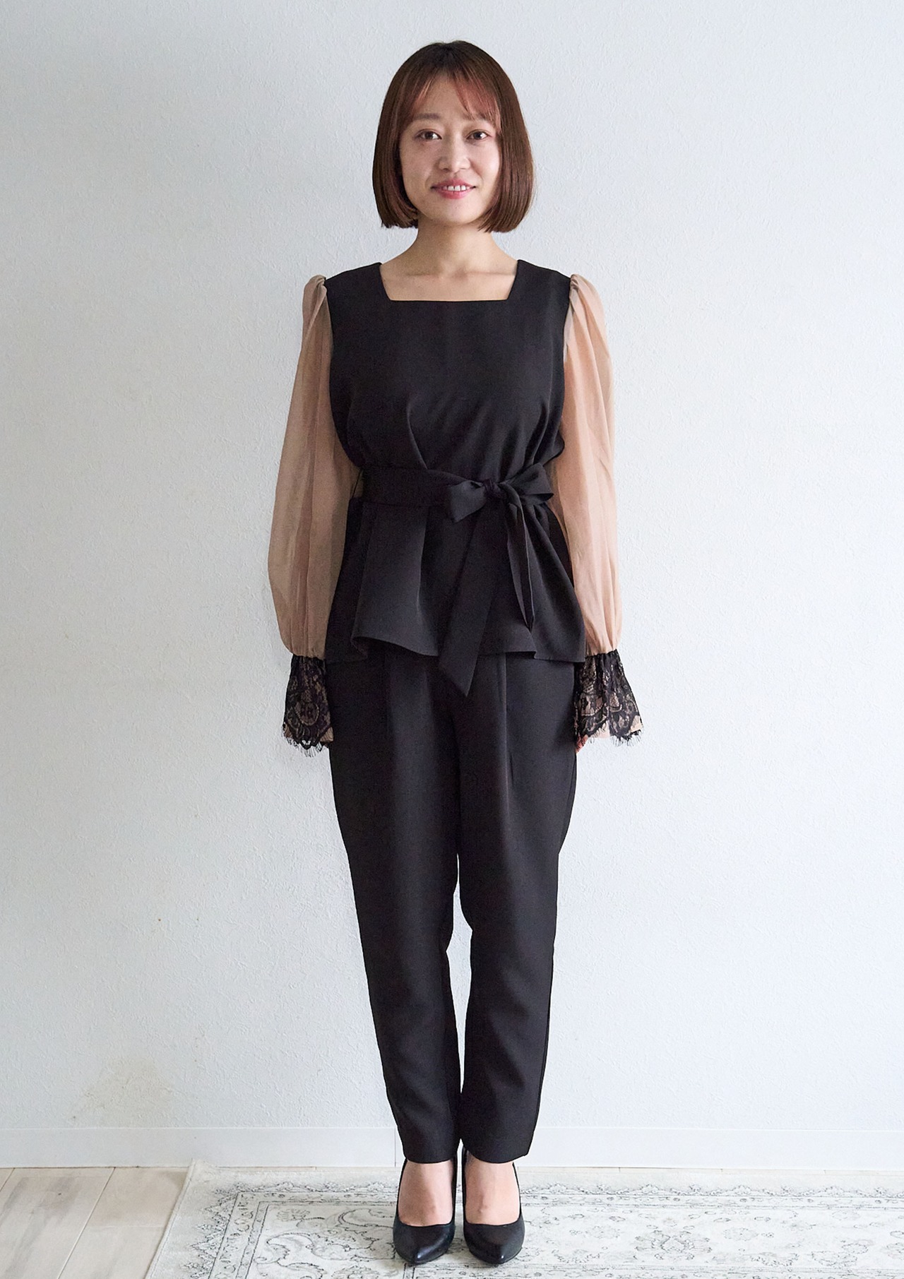 シフォンと袖のレースの色使いがとても素敵に仕上がってます。